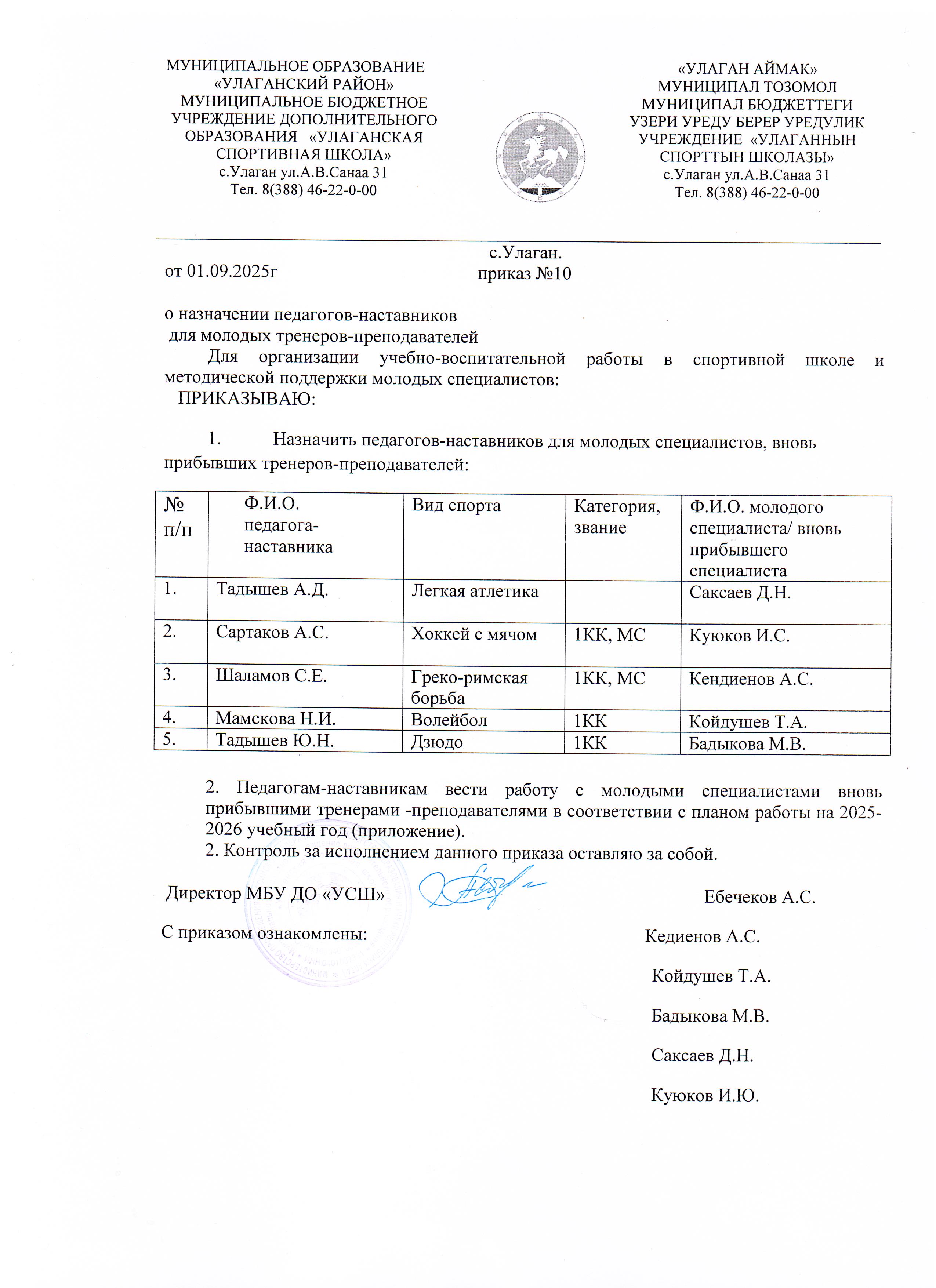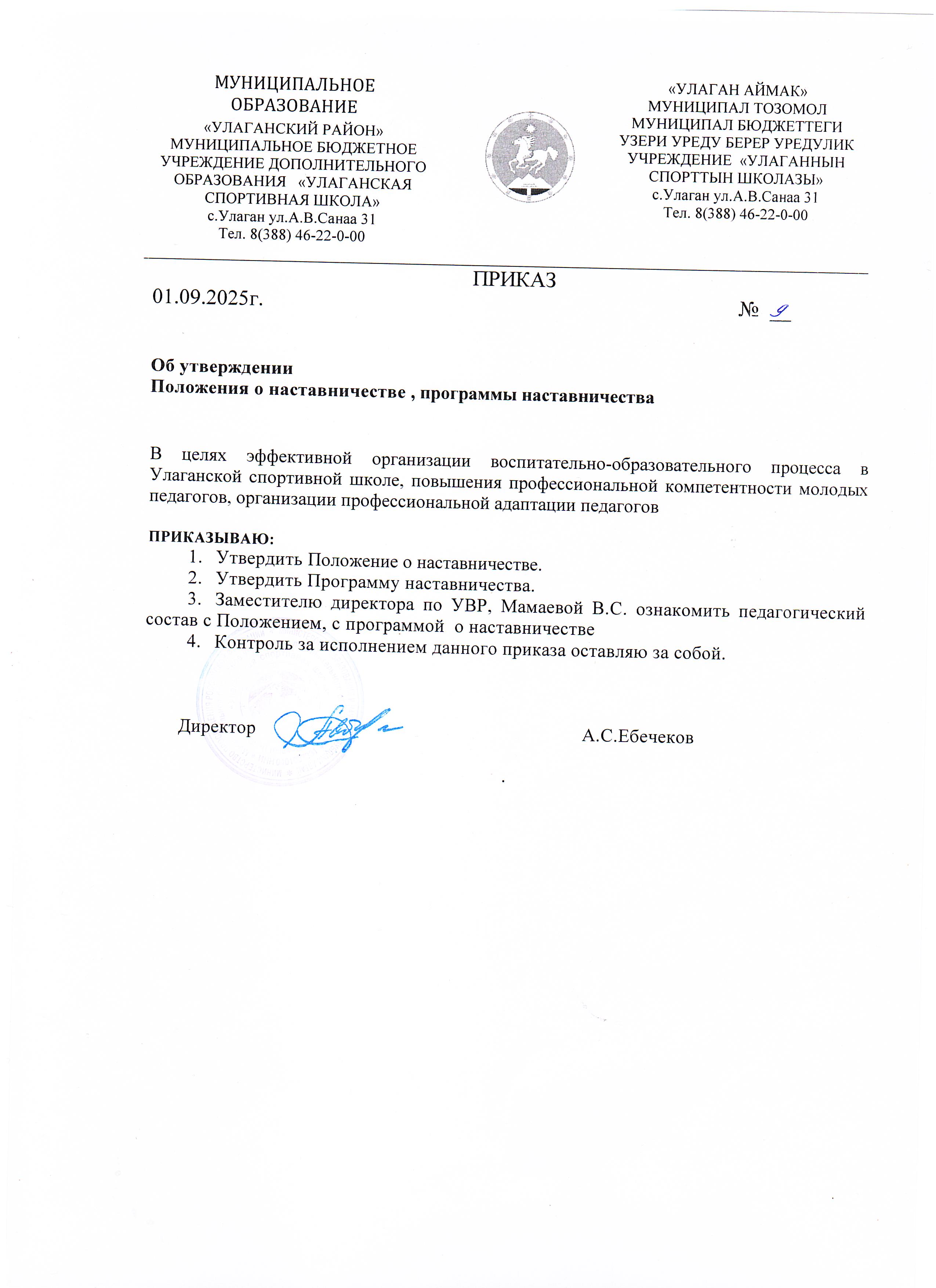 Приказ № 9 от 01.09.2025 г. "Об утверждения положения о наставничестве, программы наставничества"